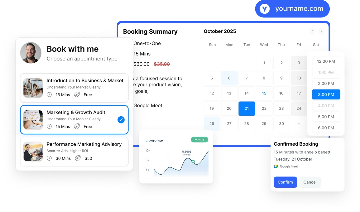 Sell 1:1 sessions without manual scheduling or follow-ups.